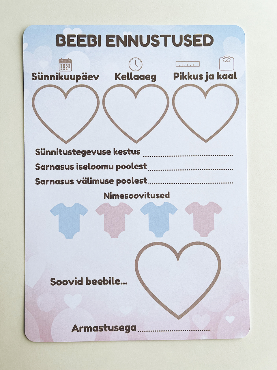Ennustusmängus saavad Sinu lähedased ennustada tulevase beebi sünnikuupäeva, kellaaega, pikkust, kaalu ja palju muud toredat. Lisaks saavad anda mõtteid tulevasele beebile nime panemiseks. 👶👧